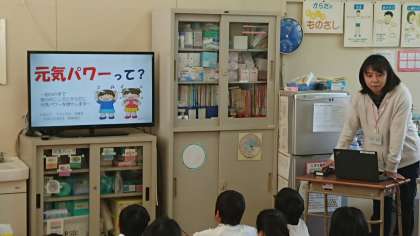保健指導では、心と体を元気にするために、どうすれば元気パワーを増やせるだろうかということについて考えました。