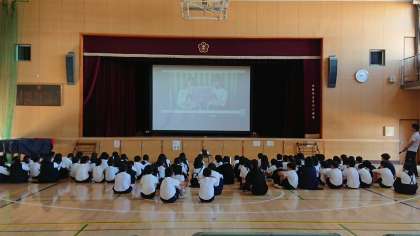 白鷺中学校の協力のもと、今川地区の地域防災リーダーとして、できることについて映像をみて考えました。