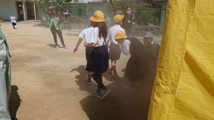 火事で煙を吸い込まず避難できるようにするための体験をしました。煙で前が見えずらいことを身をもって感じることができました。