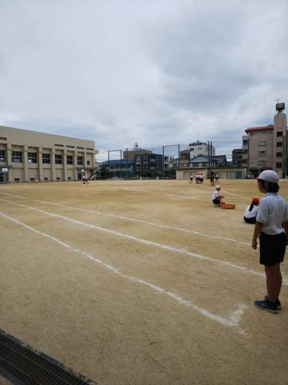 6年生も、ソフトボール投げ、50メートル走をがんばっています。