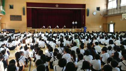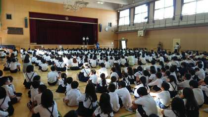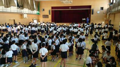 誕生日順や 背の順などのお題で、班の友だちどうしが言葉で伝えあって並び変えるゲームです。自然と楽しみながらいろんな人とのコミュケーションが増えていました。