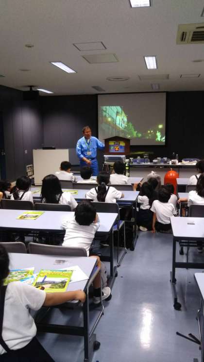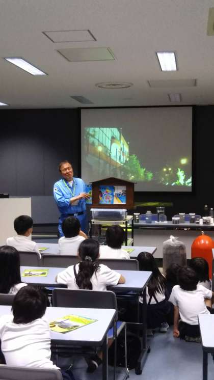紙芝居を使って、わかりやすく、下水のことについて、教えてくれています。紙芝居は、自作だそうです。