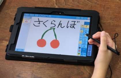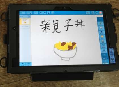 好きな食べ物は、なんですか? の質問に、子どもたちは手書き入力で発表ノートに書き込んでいきます。写真の通り、素晴らしい回答が描けました。