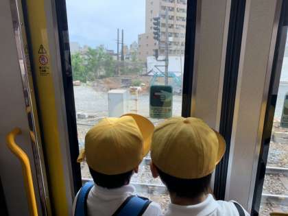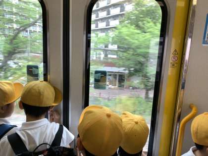 3年生は、今日は、環状線1周とハルカスに社会見学に行ってます。大阪の街の様子や建物を学習します。まずは、環状線1周です。