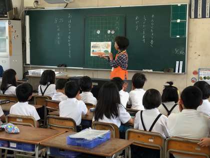 読書タイムに、読み聞かせボランティア「おはなし隊」の方による、絵本読み聞かせが行われました。低学年の子どもたちは、わくわくした表情で、お話に聞きいっていました。