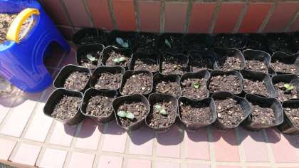 種を土に植える前に十分に吸水させていたのでヒョウタンの芽がたくさん出てきました。