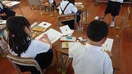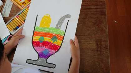 パスでおいしそうなパフェを描きました。何層にもなっていて、いろんな味が楽しめそうなパフェに仕上がっていました。見ているだけでお腹が空いてきそうです。