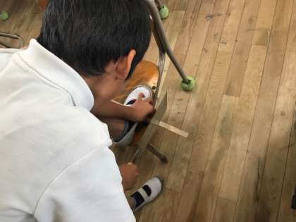 初めてのノコギリを使っての活動です。1個1個しっかりと切っています。