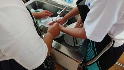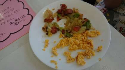 朝食に合うおかずを調理しました。グループで協力して助け合いながら、活動しました。最後の後片付けまできちんとすることができました。
