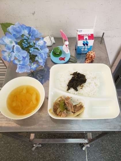 豚肉のごまみそ焼き、すまし汁、のりのつくだ煮