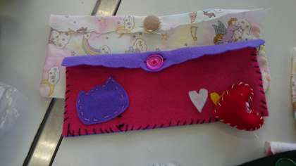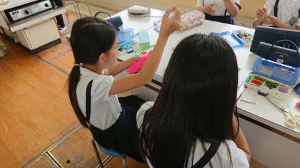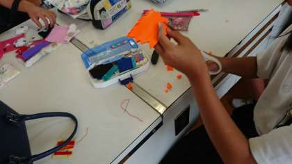 ペンケースを作った後に、余った材料を活用して、思い思いの作品を作っていました。