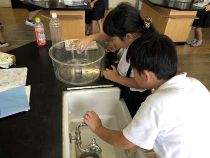「水のかさのたんい」の学習で、1リットルますや1デシリットルますをつかって水のかさをはかりました。