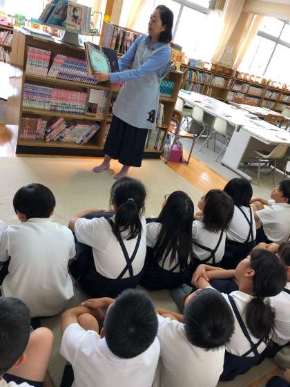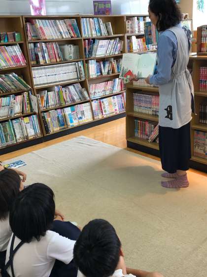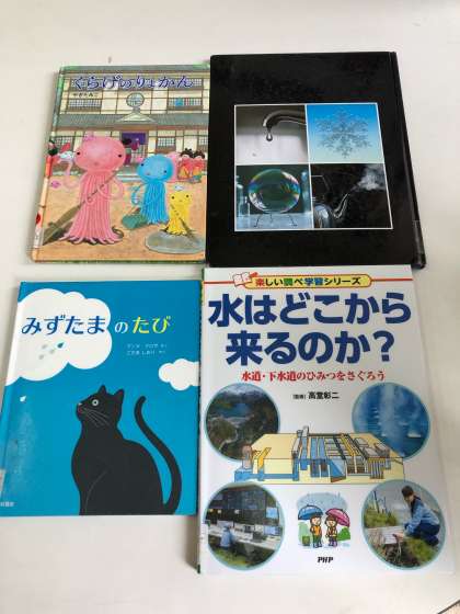 図書館補助員の先生による絵本の読み聞かせと、本の紹介がありました。子どもたちは、社会科で学習した「水」の本に興味をもっていました。