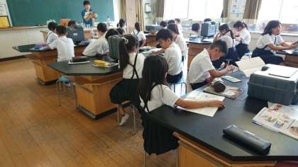 顕微鏡を使って、水の中にいてる小さな生き物を観察しました。