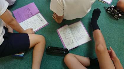 来週16日から18日にある林間学習に向けて、みんなが集まり、しおりを使って説明がありました。みんなとても楽しみにしています。それに向けての数多くの準備も進めてきました。