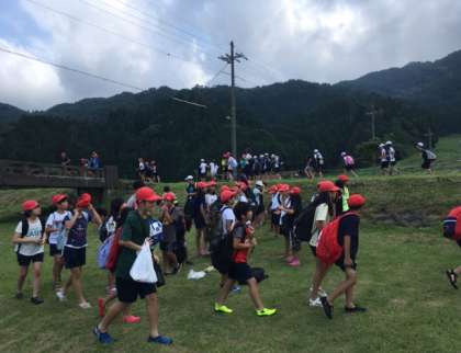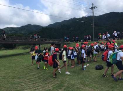 魚つかみ、川遊びを無事に終了して、宿舎に戻ります。