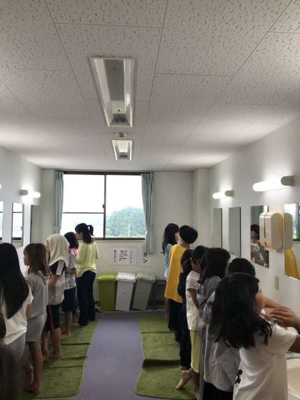 おはようございます。林間学習2日目。朝の準備をしています。「今日の活動楽しみだなあ」とわくわくしています。