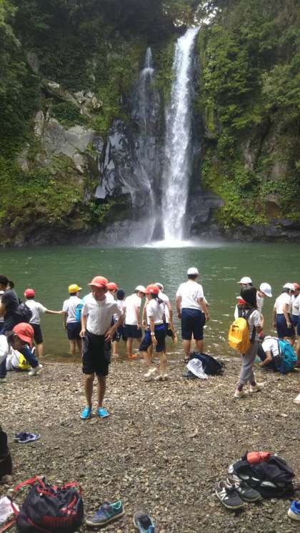 学級写真を撮ってもらい、水に足をつけて楽しみました!!