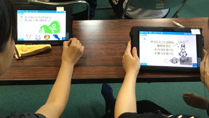 教育センターからICT教育推進アドバイザーの講師先生にお越しいただき、前半はICT活用の授業づくりの留意点について講演をいただき、後半は「遠足の絵を描こう!」と題した模擬授業・実践演習をしていただきました。子どもたちの作品作りにあたり、教師が子どもたちの心の中から表現したいものを引き出す工夫について共通理解を深めるとともに、講師先生からはICTを活用した授業改善についてヒントをたくさんいただきました。