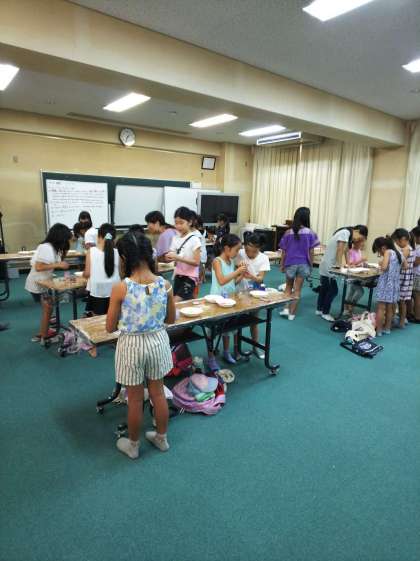 今日は、アクアリウム作りをしています。わいわいにぎやかに楽しみながら、素敵な作品ができあがりました。