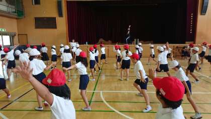 指先までをしっかりと伸ばし、体を大きく動かしながら練習に取り組んでいました。