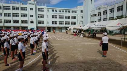 運動会の開会式を、全校児童が集まり練習に取り組みました。代表委員会の児童が中心となり、進行をしていきました。1年生は初めてでしたが、半年前に入学した子供たちとは思えないような、立派な姿が見られました。