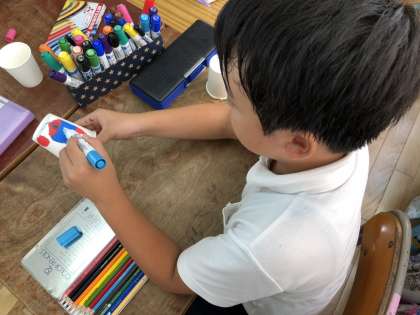 2年生は、今度1年生を招待するおもちゃランドの準備を頑張っています。