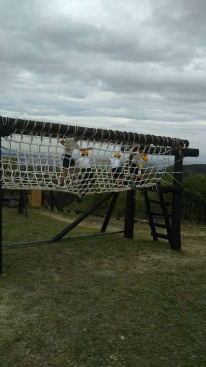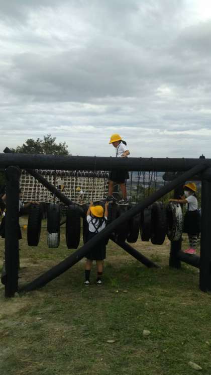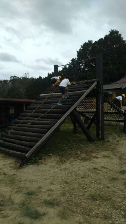 ご飯が終わり、手作りアスレチックで遊んでいます!!