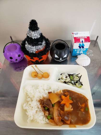 ハヤシライス、キャベツのひじきドレッシング、さくらんぼ(缶)