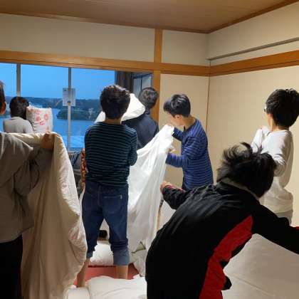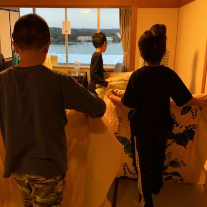 朝から子どもたちは布団をたたみ、部屋の片づけをしています。