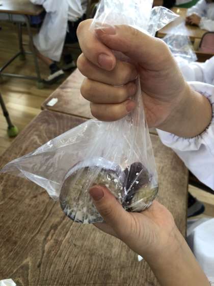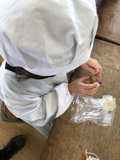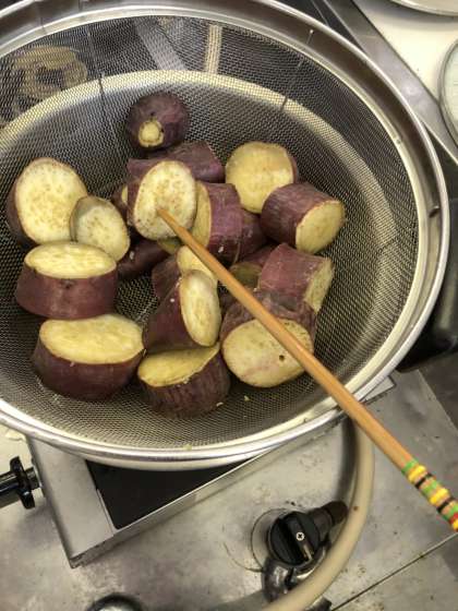 菜箸を刺して出来上がりを確認。お砂糖少々クリーム少々