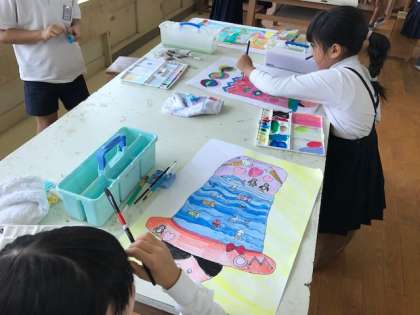 作品展に向けて図工ではサインペン、絵の具を使っています。沢山の色を使って塗っています。また持ち帰った際、チューブの中身が少なくなっていましたら、補充をお願いします。