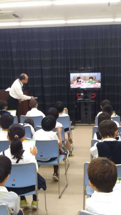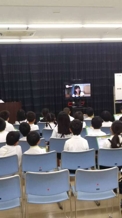AグループはDVDをみています。はがきがどのようにして届くのか、真剣な表情でみています。