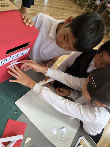 2年生は郵便局の見学に行きました。学んだ事をもとに、早速ポストをつくりました。11月に今川子ども郵便局を開設予定です。
