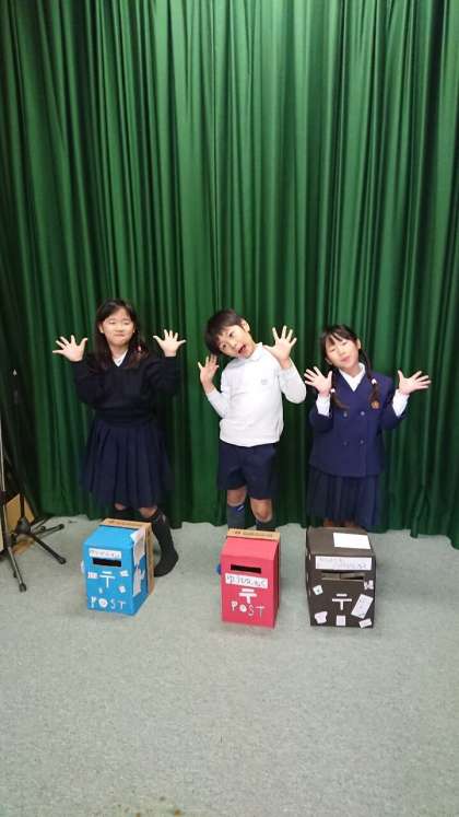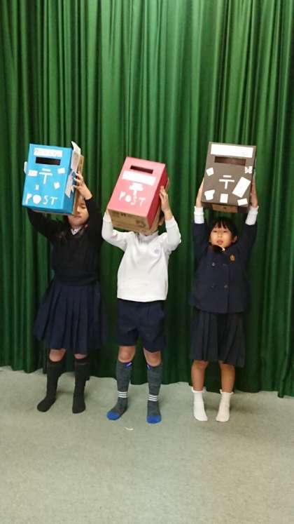 2年生 今川子ども郵便局が始まりました。テレビ放送や、校内放送をして、宣伝をし、沢山のお手紙が寄せられました。今日は、初日です。