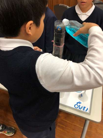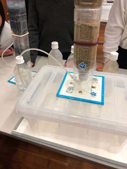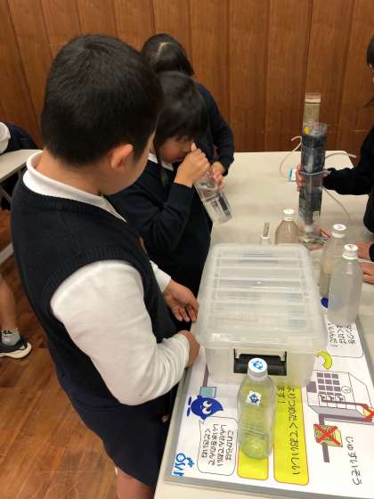 泥水や青い水が透明になり、においもなくなったので、驚きの声があがりました。
