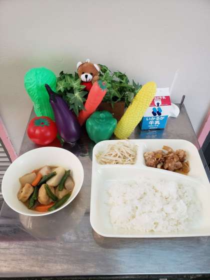 あげどりのねぎだれかけ、含め煮、もやしのゆずの香あえ