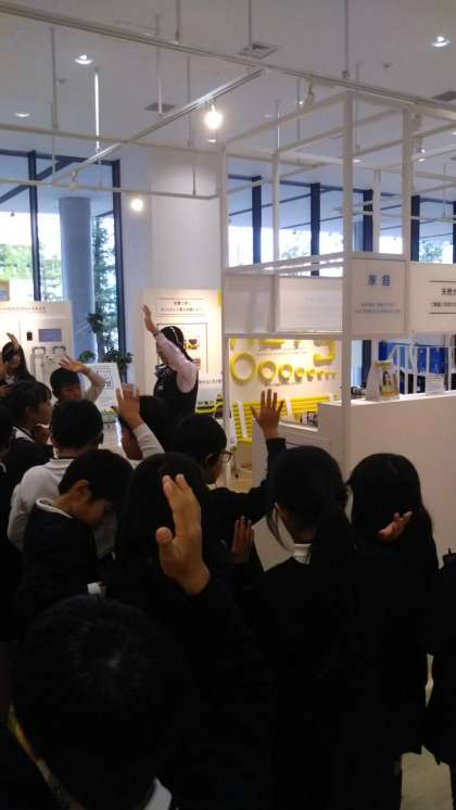 クラスごとに見学スタートです!!一人一人に無線が配られ、説明を聞きながら、展示物を見て、触って、体験しています。