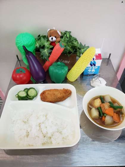 たらのフライ、豚肉とあつあげの煮もの、あっさりきゅうり