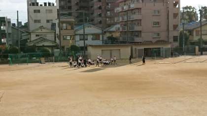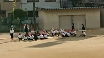 バーまでの距離や高さを考えて、リズムよく助走します。力を抜きながら、振り上げ足をできるだけ高くあげ、バーを飛び越える練習を何度もくり返しています。。