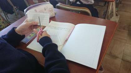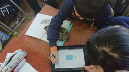 平行四辺形の面積の求め方を考えました。隣の友達と話し合ったり、班のみんなで協力しあったりして問題に取り組みました。