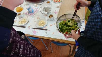 ブロッコリーやパプリカをそえて、彩り豊かに