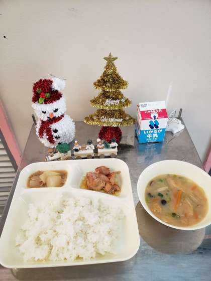 鶏肉の甘辛焼き、みそ汁、だいこんの煮もの