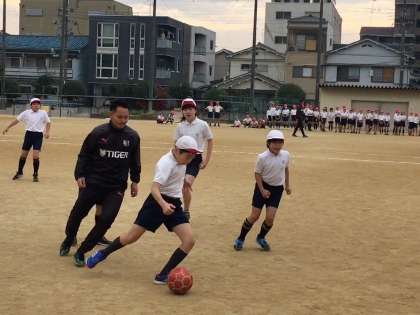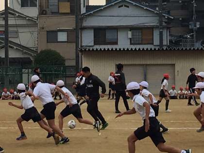 コーチ・先生の混成チーム対児童チームによるミニゲームです。