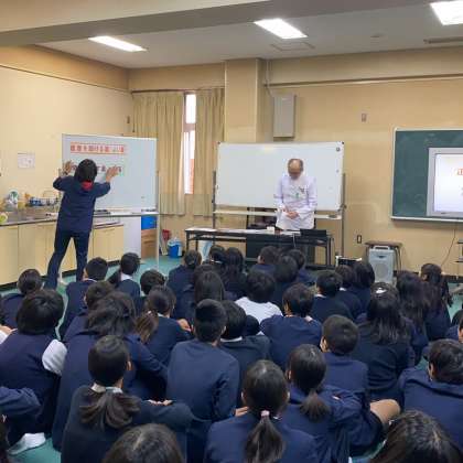 薬剤師の大岩先生をゲストティーチャーに迎え、薬の正しい飲み方や、薬物の危険性について学びました。
