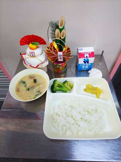 かす汁 ブロッコリーのしょうがづけ くりきんとん ごはん 牛乳