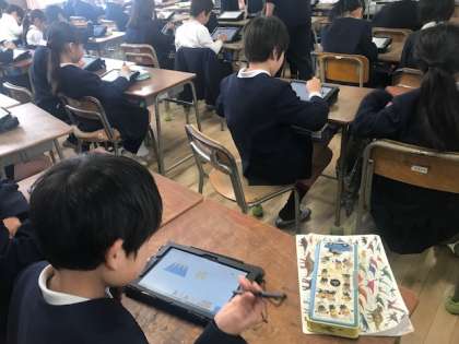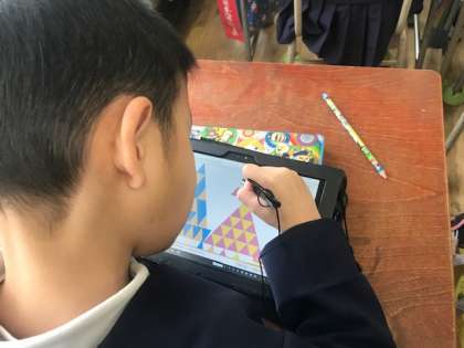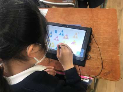 算数科「三角形と角」の学習で二等辺三角形と正三角形をしきつめる学習をしました。