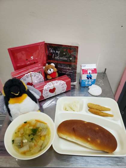 わかさぎフライ、はくさいのスープ、カリフラワーのサラダ