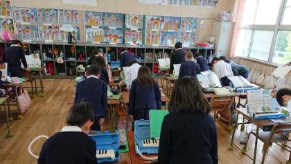 学習参観での発表に向けて、一所懸命に練習に取り組んでいます。