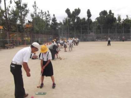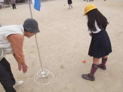 今回は、今川グラウンドで「グランドゴルフ体験」。